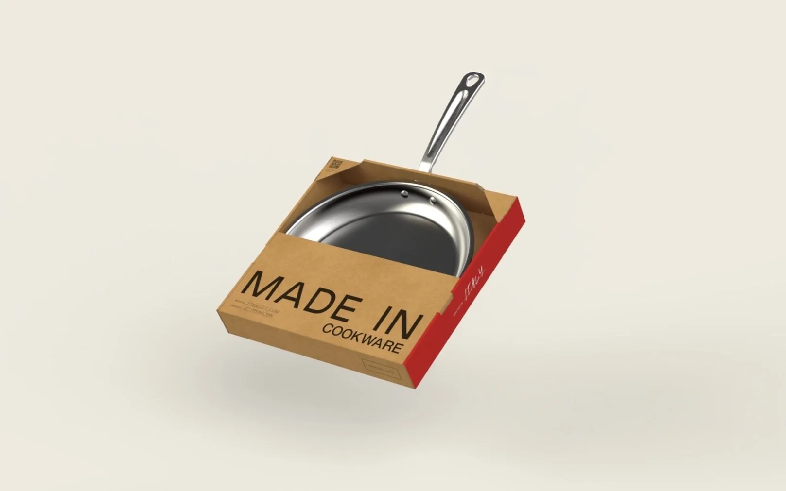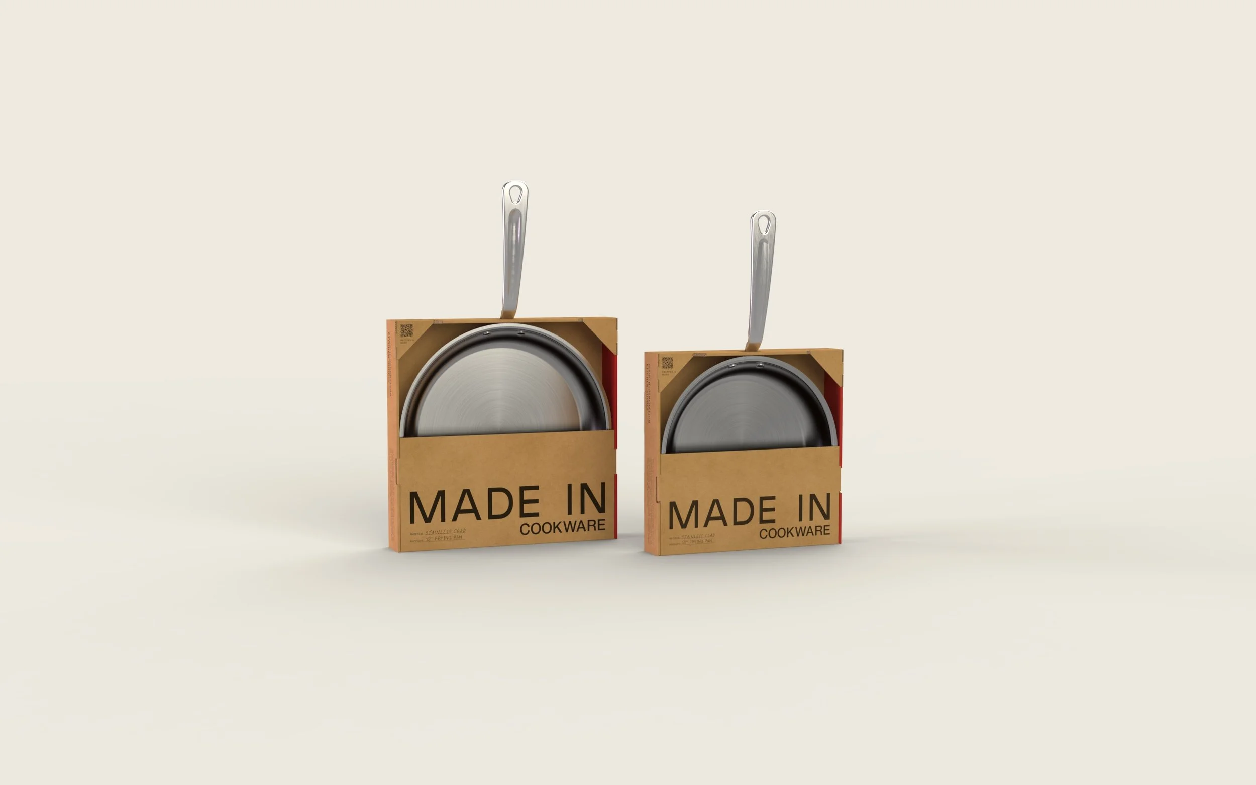 Made In as a brand focuses on a refined aesthetic supported by the highest quality of materials and assembly process for the job. This focus on materials and durability resonates with a sustainable sensibility that must be apparent in the packaging design.